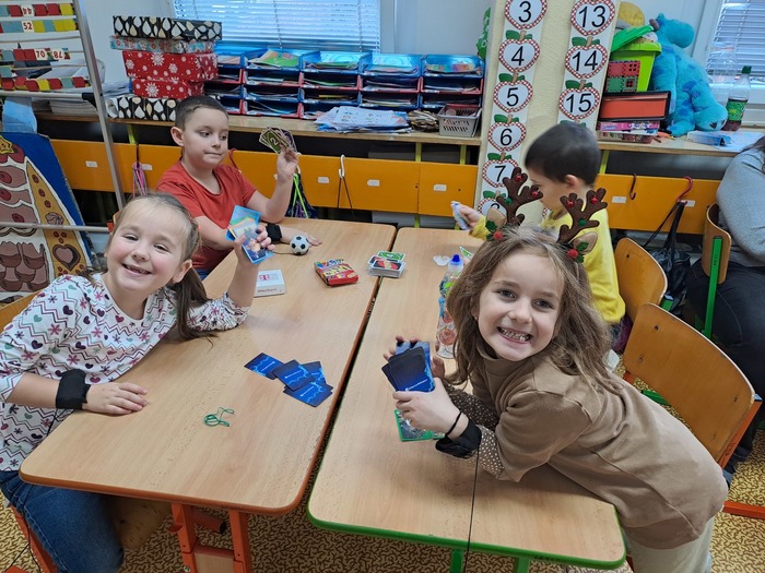 Vánoce ve třídě byly plné radosti! Děti si vyrobily vánoční přáníčko a vyměnily dárky. Zazpívaly koledy, užily si anglické zpívání v tělocvičně a fotokoutek. Hrály deskové hry a vánoční hru „Já mám, kdo má“. Den byl plný zábavy a vánoční pohody!