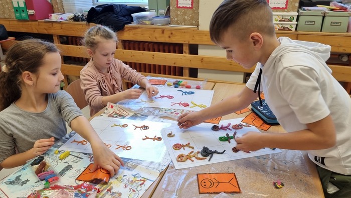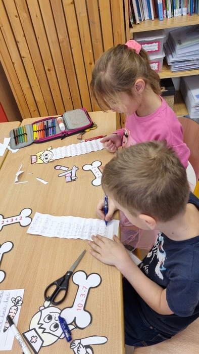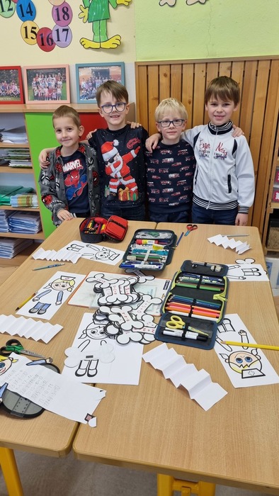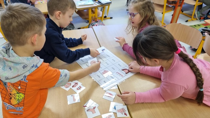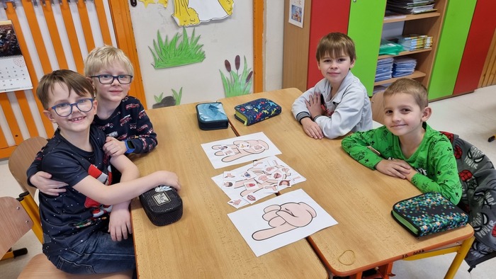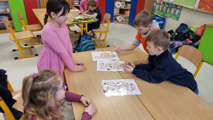 Děti si tento týden vyzkoušely práci v centrech aktivit na téma Lidské tělo. Vybíraly zdravé a nezdravé potraviny, popisovaly lidské tělo, počítaly početní řetězce do 10 a modelovaly z plastelíny, skládaly a opisovaly věty. Ve skupinách se jim dařilo moc hezky spolupracovat.
