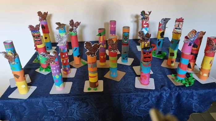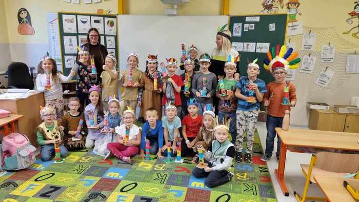 Našemu indiánskému dni předcházela poctivá příprava. Nejdříve jsme si vyrobili indiánské čelenky, potom jsme si vyrobili totem a povídali o jeho významu a v neposlední řadě jsme se naučili indiánskou básničku.