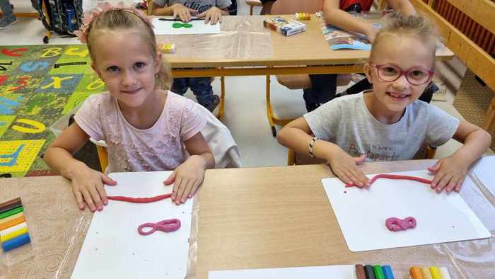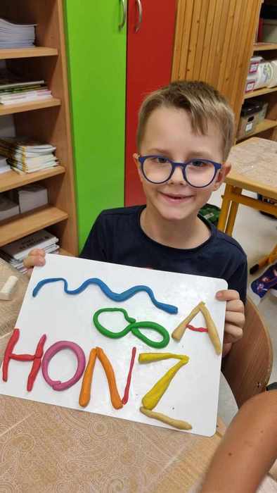 V naší třídě 1. B začínáme pilně pracovat. Modelujeme, obtahujeme, uvolňujeme ruce.