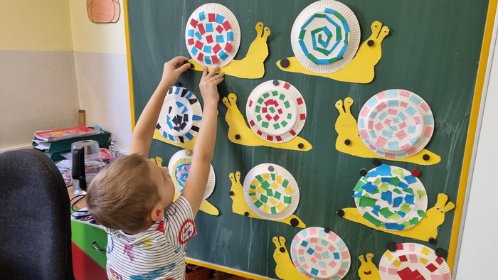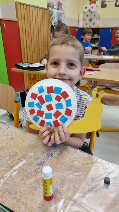 Poslední týden byl ve znamení nového písmene Š. Děti vyráběly a modelovaly šneky, vlepovaly slova do ulity, vyhledávaly 4 tvary probraných písmen.