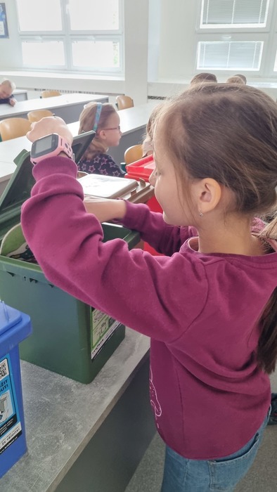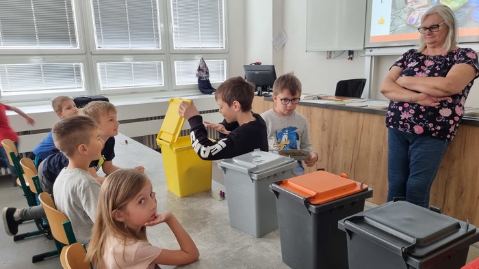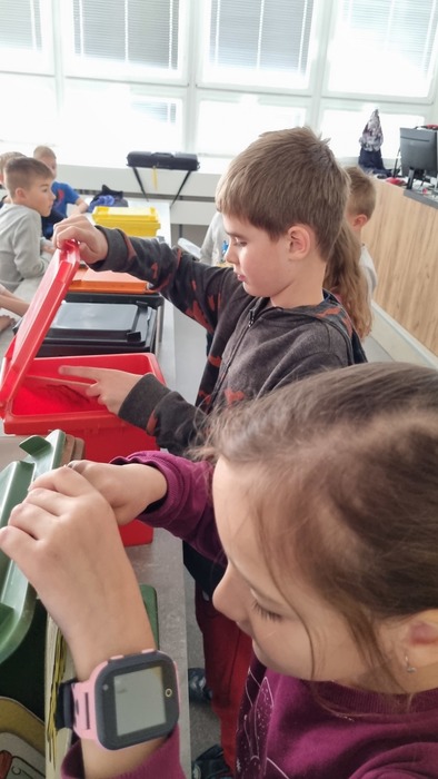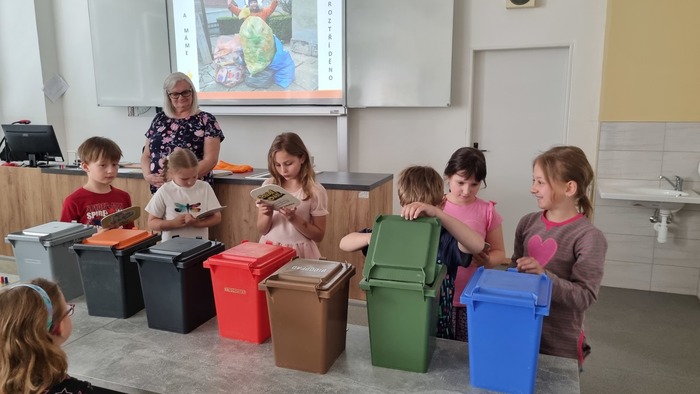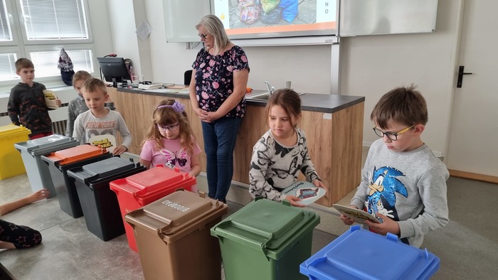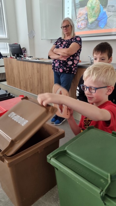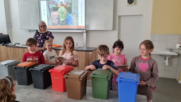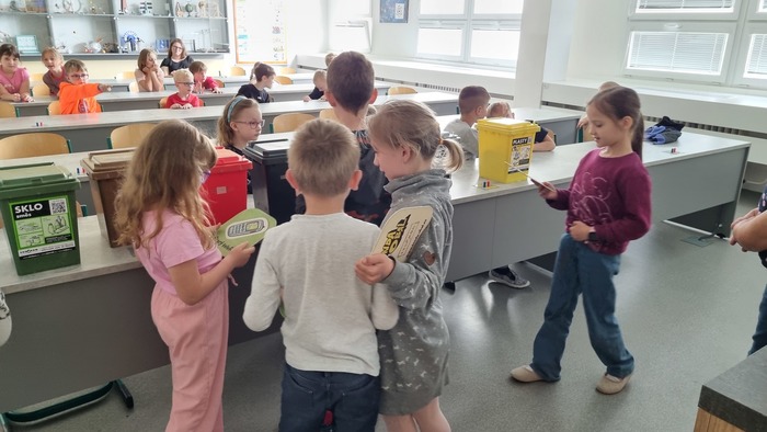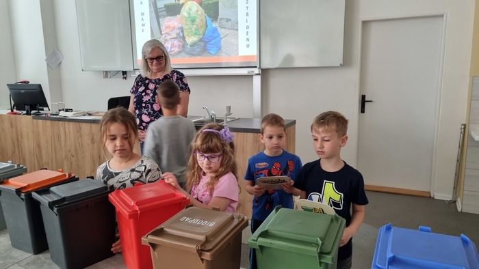 Děti prokázaly spoustu znalostí, které potom vyzkoušely v praxi při třídění obrázků odpadků do připravených kontejnerů.