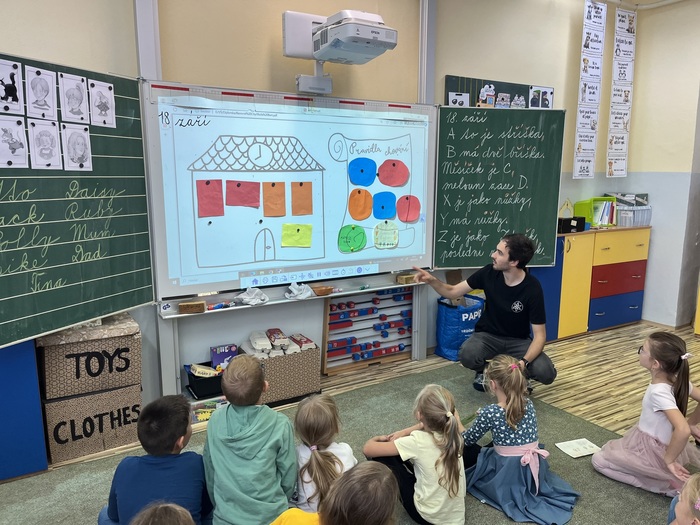 V září v naší třídě vykonával souvislou praxi budoucí učitel 1. stupně. Nadále k nám chodí na pár hodin v pátek a děti mu pomáhají s diplomkou.