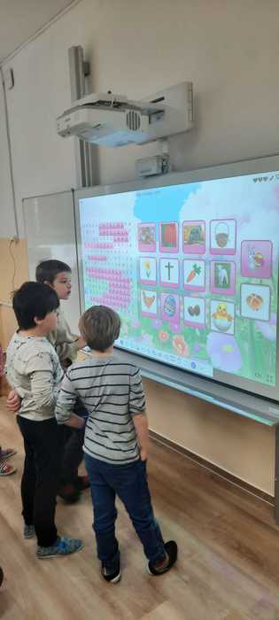 V pátek 1. dubna připravili starší žáci pro děti prvního stupně již tradičně zábavnou stezku plnou úkolů. Všechny aktivity byly v angličtině, točily se kolem Velikonoc a děti je s chutí všechny plnily.