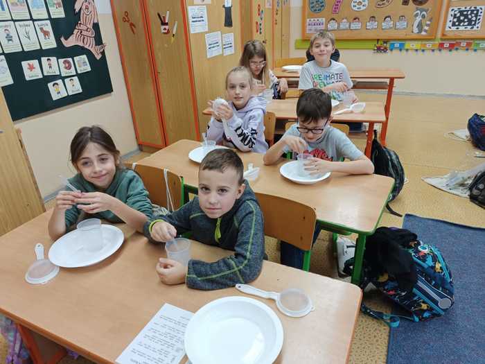 V úterý 2. prosince 2024 jsme se moc těšili na hodinu prvouky. Dostali jsme nádherný batůžek, kde bylo mnoho věcí na pokusy. My jsme zkoumali, které látky jsou ve vodě rozpustné či nerozpustné. Bádání nás moc bavilo.